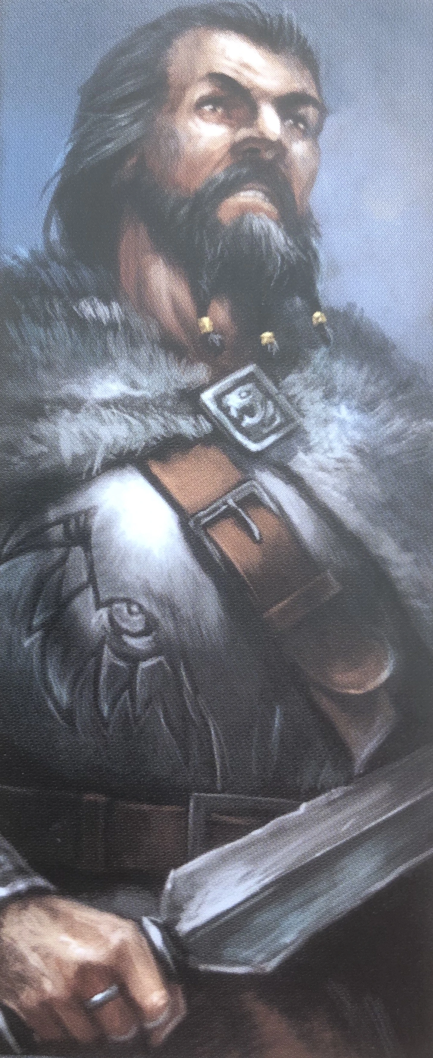 - Die zweite Version (grau, Rüstung) ist in der ursprünglichen, breiten Bonus-Box von 2017 enthalten. Diese Variante hat im Spiel graues Material und 2/2/3 Würfel. Sie trägt eine eiserne Rüstung, in die ein Wolf eingraviert ist.