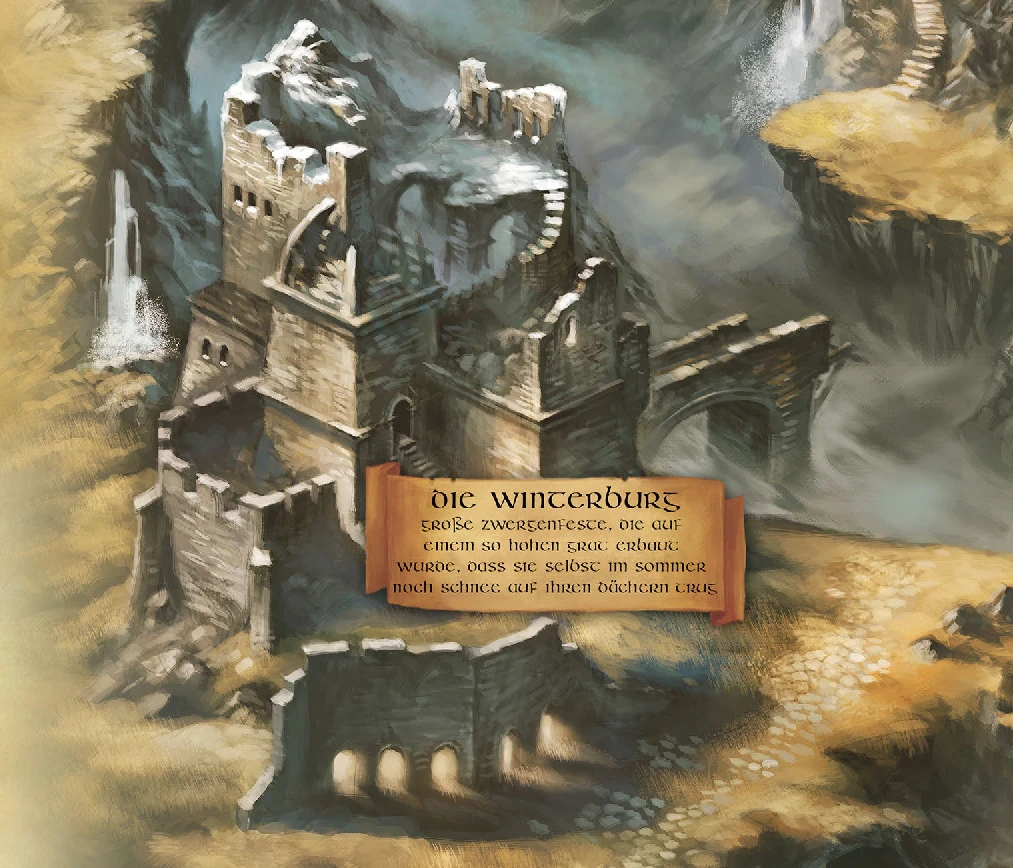 Die Winterburg wurde von den Zwergen im Grauen Gebirge erbaut. Nach dem Krieg gegen die Drachen und Riesen zogen sie sich in ihr unterirdisches Reich zurück und Drachen besetzten die Burg. Als Nomion die Kontrolle über den Urtroll ergriff, ließ er das uralte Wesen die Winterburg zerstören.[1]